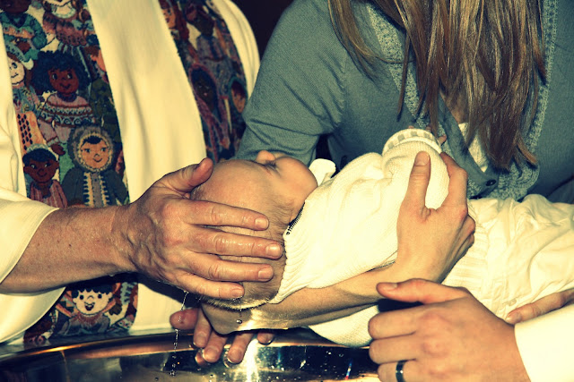 quinn's baptism was this weekend and it was such a beautiful day. it was warm and the sun was shining. our immediate families joined us for a small service at our church. our dear friend father tom celebrated the baptism and made it so fabulously personal and warm. we chose auntie bridget (my sister and the maid of honor in our wedding) as quinn's godmother and uncle bill (mike's brother and his best man) as his godfather. bridget will be goofy and fun and teach quinn tolerance and love. bill will continue to be totally taken with quinn and teach him to be fiscally responsible (seriously...the boy needs this with us for parents). i could not believe that time was flying so fast, quinn was almost 6 months old already, and here we were at his baptism. he gave one little revolt in the beginning before drifting off to sleep. he didn't even awaken with water and oils being poured over his head. and he looked absolutely adorable (is it okay for me to keep talking about how ridiculously cute he is considering i made him?) in his prepster/non-traditional white attire. i was overcome with emotion when tom invited all the mothers and mother-to-be to lay hands on me and pray for me. to have such strong and amazing women surround me with such love was incredibly moving and powerful. tom asked the fathers to do the same with mike. what a blessing to have such fabulous role models in our life. after the service, we partied at our house. some billy holiday tunes, shots of tequila, delicious food, way too many desserts, and great conversation. just a magical day.